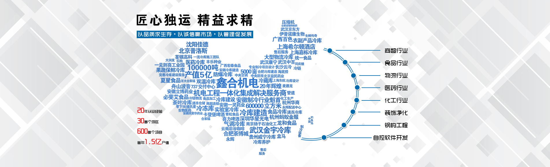 安徽鑫合機電設備有限公司于2002年組建運營,專業(yè)從事冷凍、冷藏庫、中央空調(diào)、醫(yī)藥凈化工程的規(guī)劃設計、施工承建、售后服務為一體的綜合性工程公司,與100多家實力雄厚的大中型企業(yè)建立長期產(chǎn)略合作關(guān)系,其中有多家世界500強和上市企業(yè)。公司作為中國倉儲與配送協(xié)會會員單位、安徽省制冷學會理事單位、上海楊浦區(qū)制冷協(xié)會工程總承包負責單位,引領(lǐng)于行業(yè)前沿。我們將銘記給予我們大力支持的各界新老朋友及合作伙伴,我們將會保持“互惠互利、共同發(fā)展”的原則與您共創(chuàng)雙嬴的合作關(guān)系。